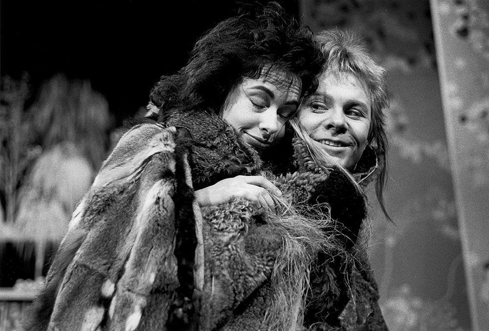 Anna Hultin spelade Ronja Rövardotter och Peppe Forsblom var Birk Borkason då Ronja Rövardotter fick sitt uruppförande på Svenska Teatern 1987. Foto: Peter Sandberg